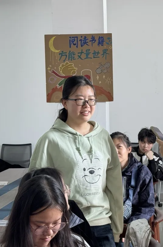 开幕致辞中,孔雅斌老师将图书馆比作“精神充电桩”,鼓励大家在忙碌中为心灵充一次温暖的电。助理馆员负责人付梓蔓同学则通过生动的讲解,带领大家回顾了世界读书日的起源与意义,并呼吁师生“让阅读成为生活的一部分”。